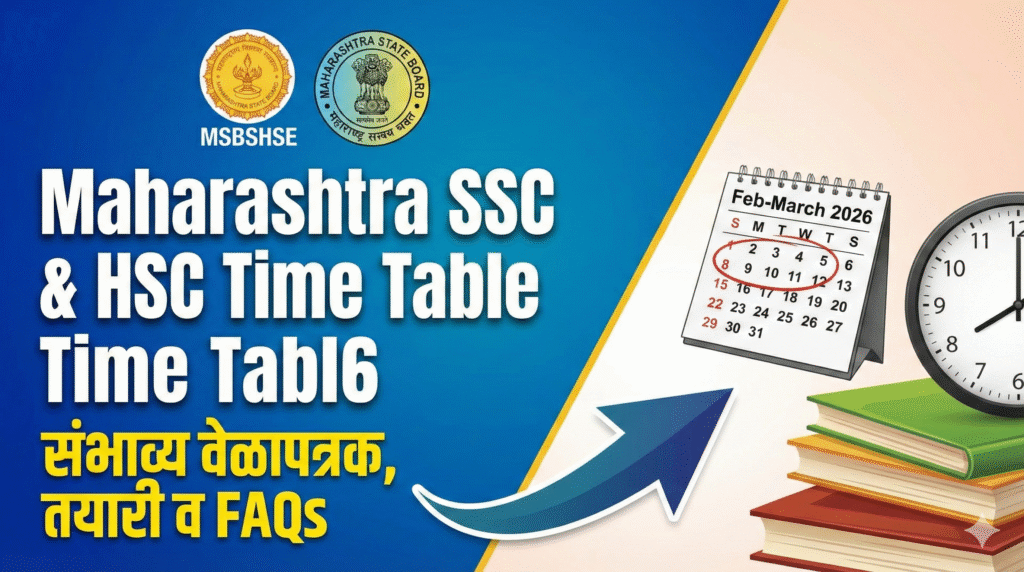 या लेखात, आपण Maharashtra SSC & HSC Time Table 2026 बद्दलची संभाव्य माहिती, परीक्षेचा पॅटर्न, तयारीची दिशा आणि विद्यार्थ्यांच्या मनातील महत्त्वाच्या प्रश्नांची (FAQs) उत्तरे पाहणार आहोत.